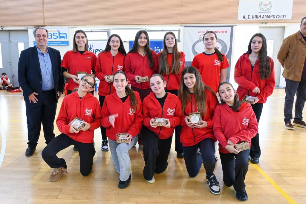 Ακολούθησε το κομμάτι των βραβεύσεων, σε ένα ιδιαίτερα συγκινητικό κλίμα. Όπως κάθε χρόνο, η Νίκη Αμαρουσίου βράβευσε τους μικρότερους αθλητές των ακαδημιών μπάσκετ, Σωτήρη Παλαιοπάνο και Πέπη Αλεξοπούλου, καθώς και τη μικρότερη αθλήτρια των ακαδημιών βόλεϊ, Ολίβια Απέργη. Τα βραβεία απένειμαν τα μέλη του Διοικητικού Συμβουλίου Βασίλης Κωνσταντακόπουλος, Γιάννης Παππάς και Βασίλης Μπούρας.